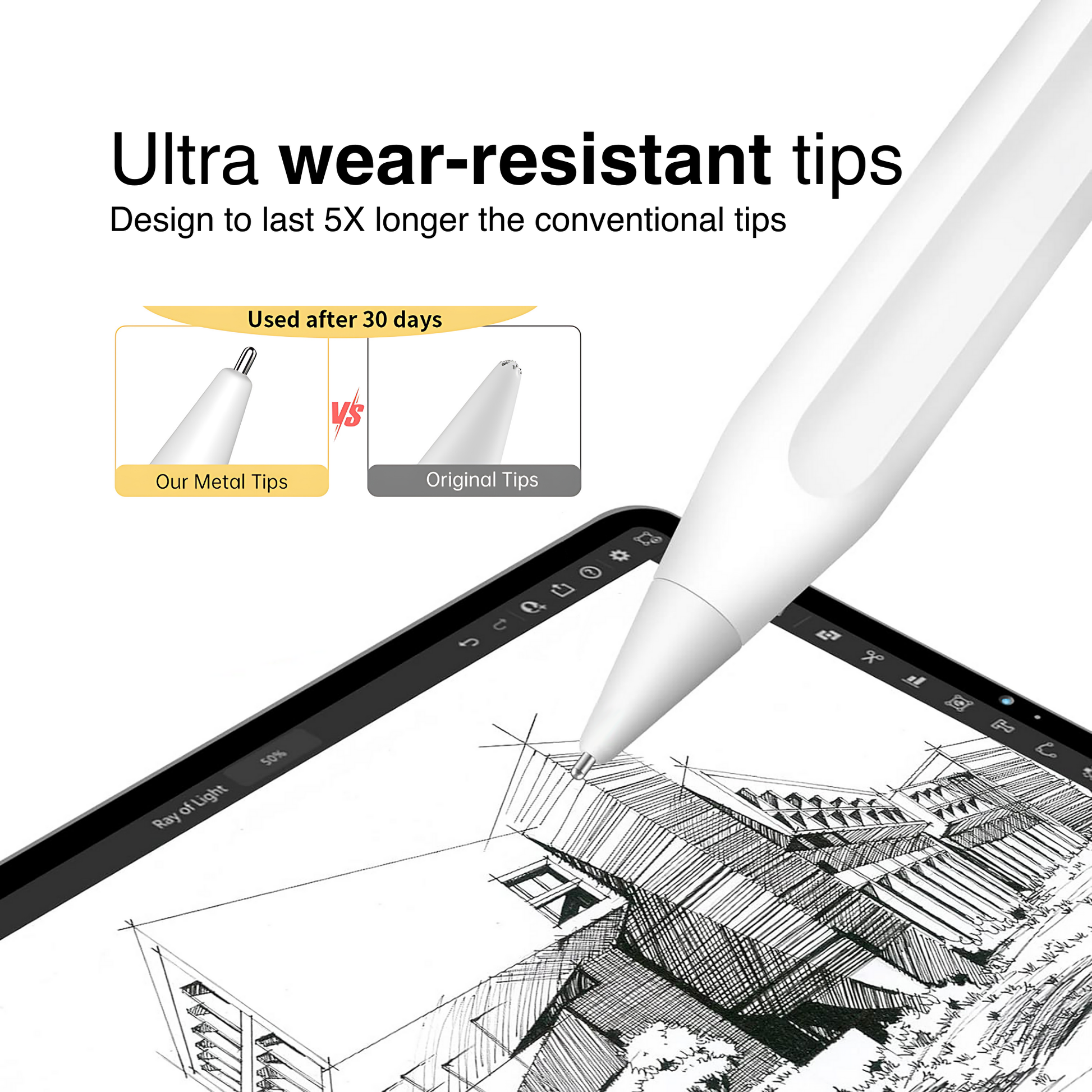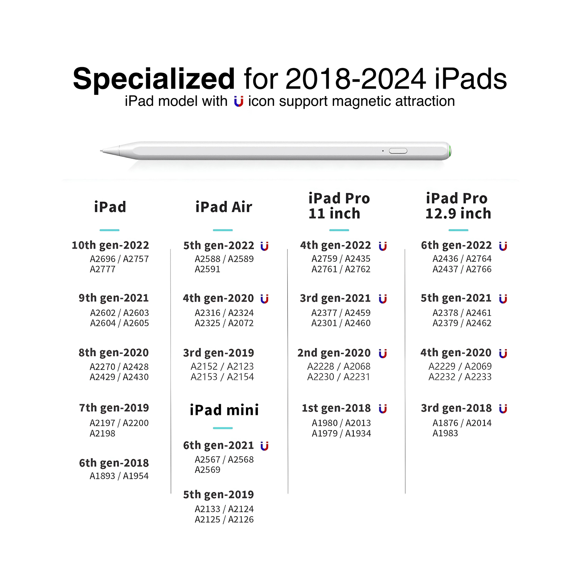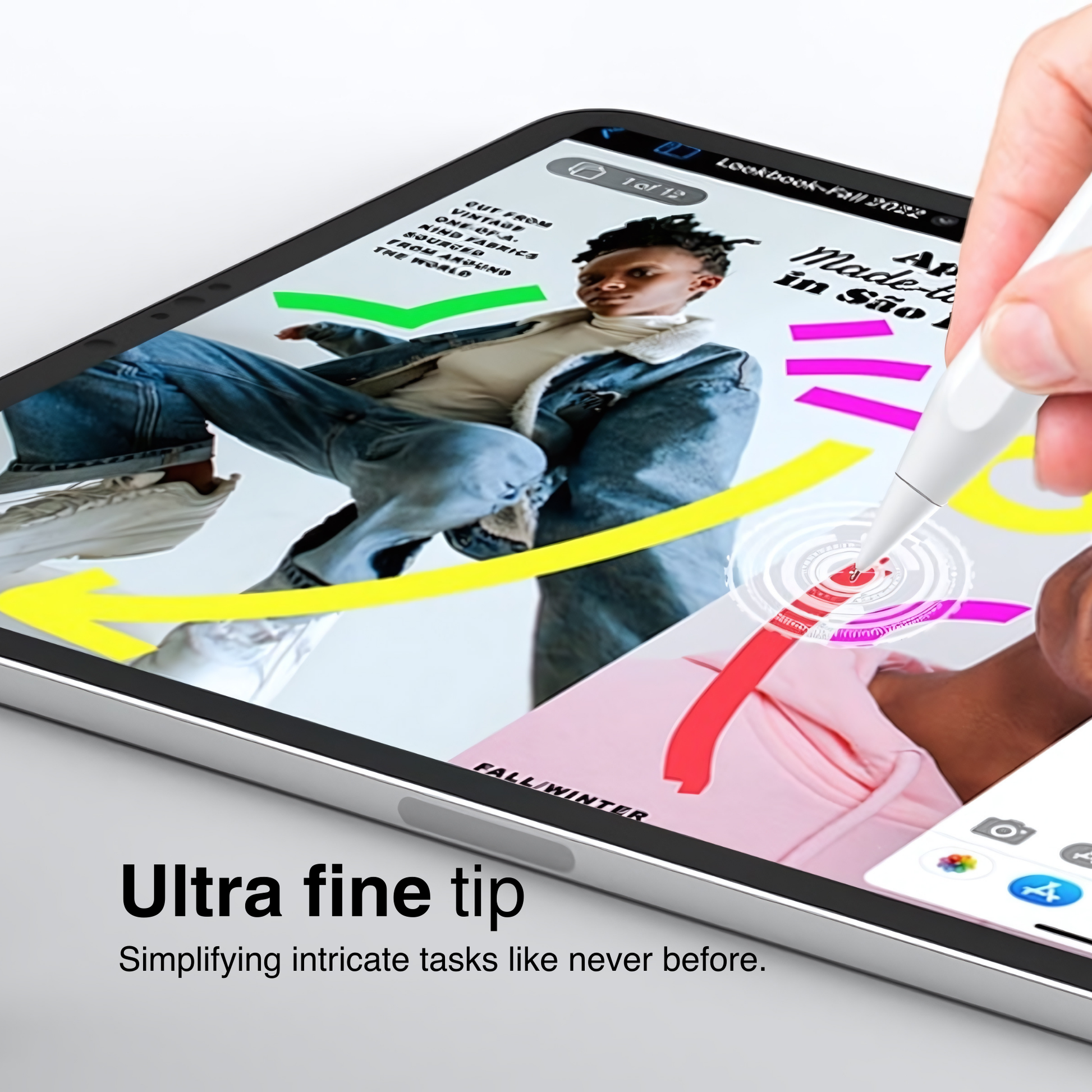 The Miccory - Ultra Fine Tip Apple iPad Palm Rejection Stylus Pen delivers pixel-perfect precision, making it ideal for drawing, sketching, coloring, taking notes, marking up PDFs, and more. It's as easy and natural to use as a pencil and is compatible with 2018-2024 iPad models and newer.