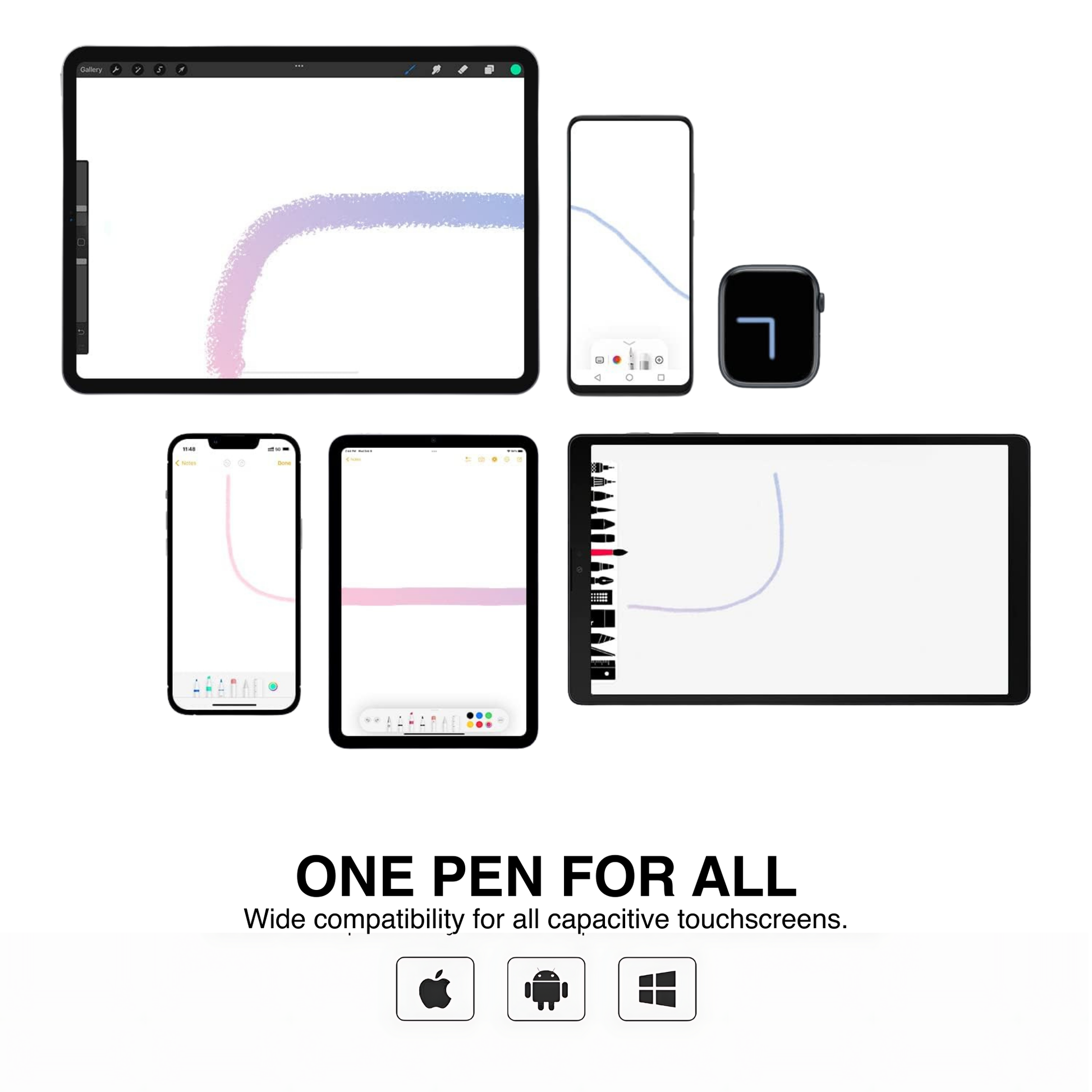 This universal stylus is compatible with a wide range of touch screen devices including Apple, Samsung, Moto, Lenovo, Xiaomi, and more. It works seamlessly with major operating systems such as Google, Android, and Microsoft. Whether you're writing on drawing apps, taking notes, reading news, or playing games, the Miccory Jot 2 in 1 Stylus Pen delivers a natural and accurate touch screen interaction.